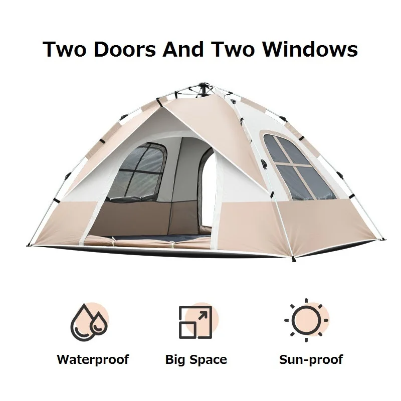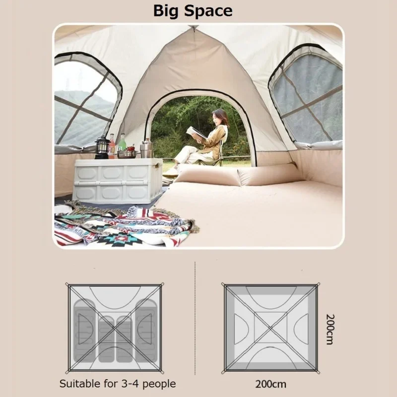 3-4 Person Camping Tent One-touch Full Automatic Tent Waterproof Sun-proof 2 Doors 2 Windows Big Space Family Travel Tent